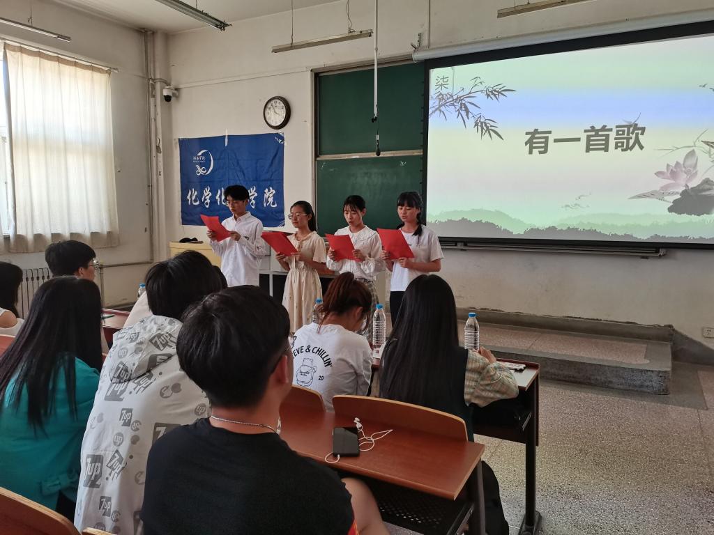 为提高师生思想道德修养和文明素质,培养当代老员工的兴趣爱好,丰富课余生活,做到传统文化的继承与弘扬。公司于2021年5月30日于八教107举办第四届“国学经典诵读大赛”。陈敏、杨繁、汪浩、孙丽丽、巨晓慧、李亚君为出席本次活动的嘉宾,各班班长、团支书、员工代表及全体员工会工作人员参加此次活动。