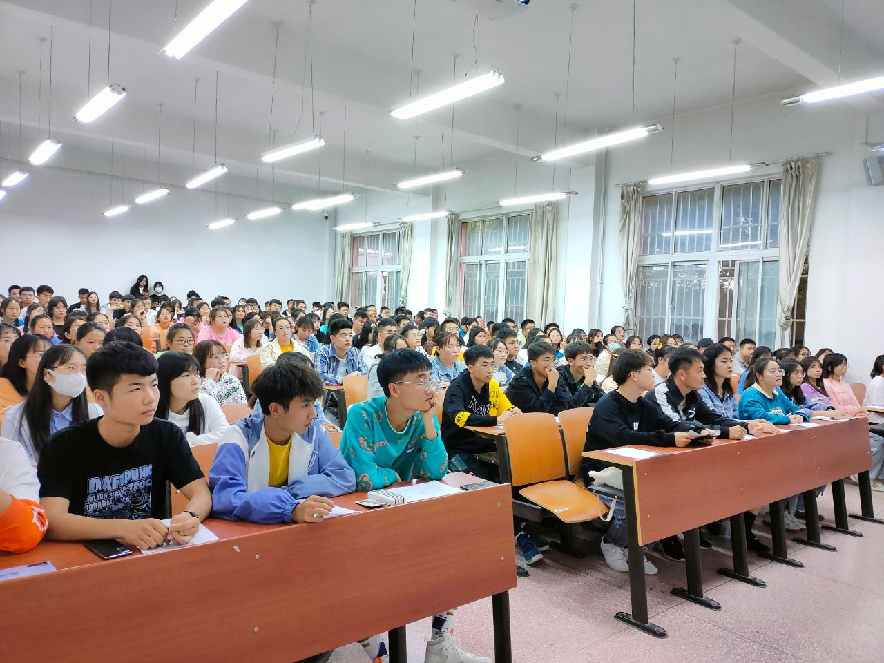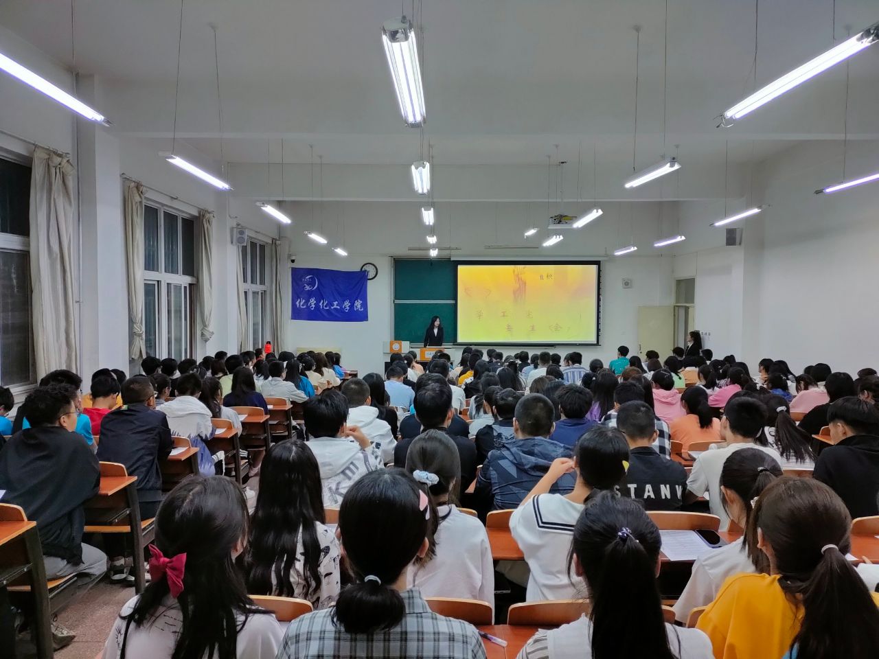首先由主持人刘池宣布活动正式开始,接着各部门宣讲人依次介绍自己所在的部门。他们通过简洁的PPT和创意性的短视频等方式向大一新生展现了各部门的职责、工作任务和对未来的展望。活动在员工会成员的组织下有序进行着,每一位大一新生都在认真的聆听着学长学姐们的讲解,体现了他们对员工会各部门的兴趣以及好奇。在此期间,宣讲人时不时地与大一新生进行互动,带动他们的积极性,营造出一种激情四射的氛围。此次活动伴随着各位宣讲人精彩的讲解接近尾声,最后由刘池总结本次活动。此次活动圆满结束。