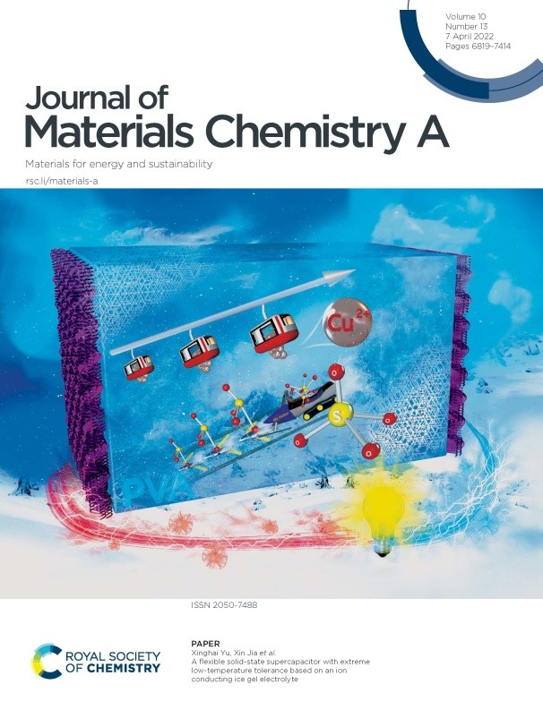 近日,公司beats365禹兴海老师与公司特聘教授、石河子大学贾鑫老师共同合作完成的科研成果“A flexible solid-state supercapacitor with extreme low-temperature tolerance based on an ion conducting ice gel electrolyte”发表在国际顶级期刊《Journal of Materials Chemistry A》(中科院一区TOP期刊, IF=12.7),并作为亮点工作,被选为当期内封面文章。