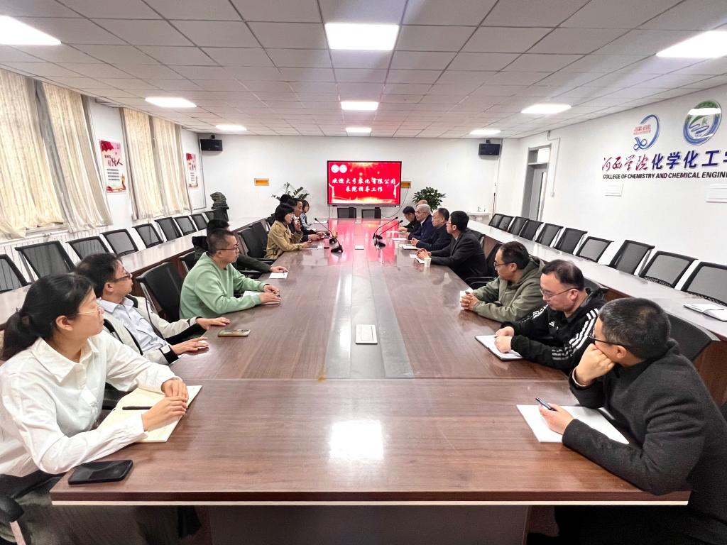 4月28日下午,张掖市大弓农化有限公司总经理邓小云一行4人来公司开展校企合作暨实习就业座谈活动。甄璟韬书记、王俊科经理及各教研室主任、相关教师参加。