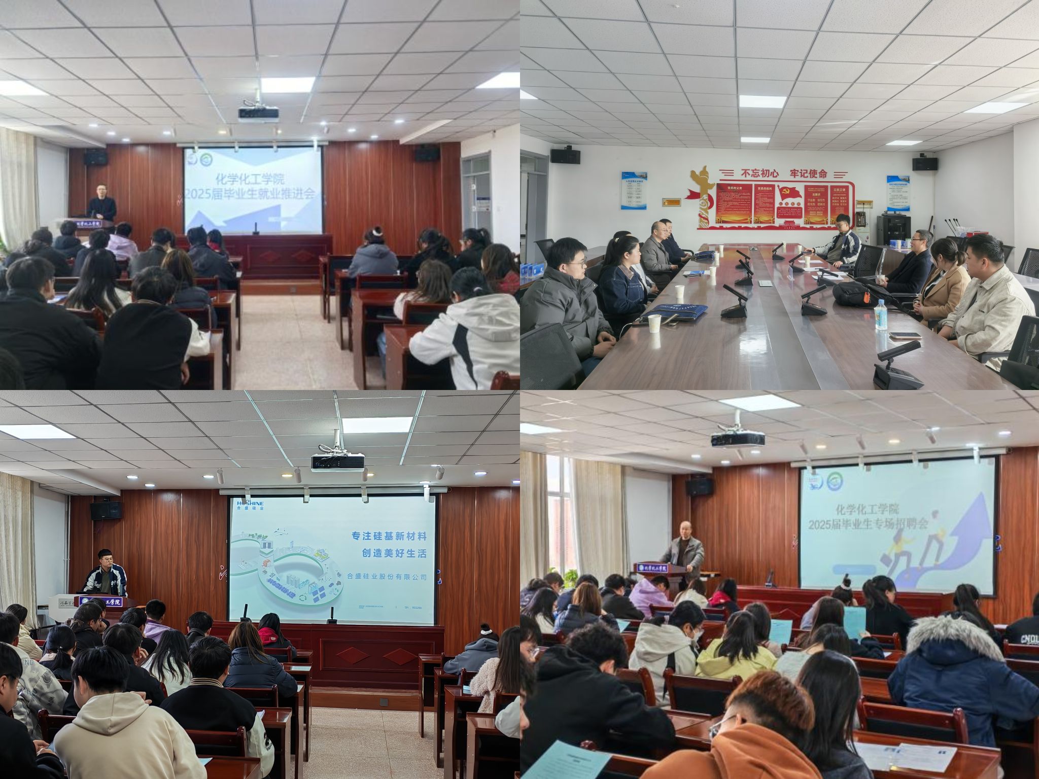 本次招聘会分别邀请新疆合盛硅业有限公司、江苏先声药业优先公司、甘肃维尔沃科技有限公司、甘肃锦世化工有限公司、甘肃勤业化工有限公司、甘肃绿源检测科技有限公司、张掖市大弓农化有限公司。宣讲中,用人单位通过 PPT 展示、全方位地介绍了企业背景、单位运营概况、竞争优势、岗位详情、薪资福利待遇,以及职业发展前景。面对员工提出的各类问题,招聘负责人都给予了耐心细致的解答,让员工们对企业有了更深入、直观的了解。