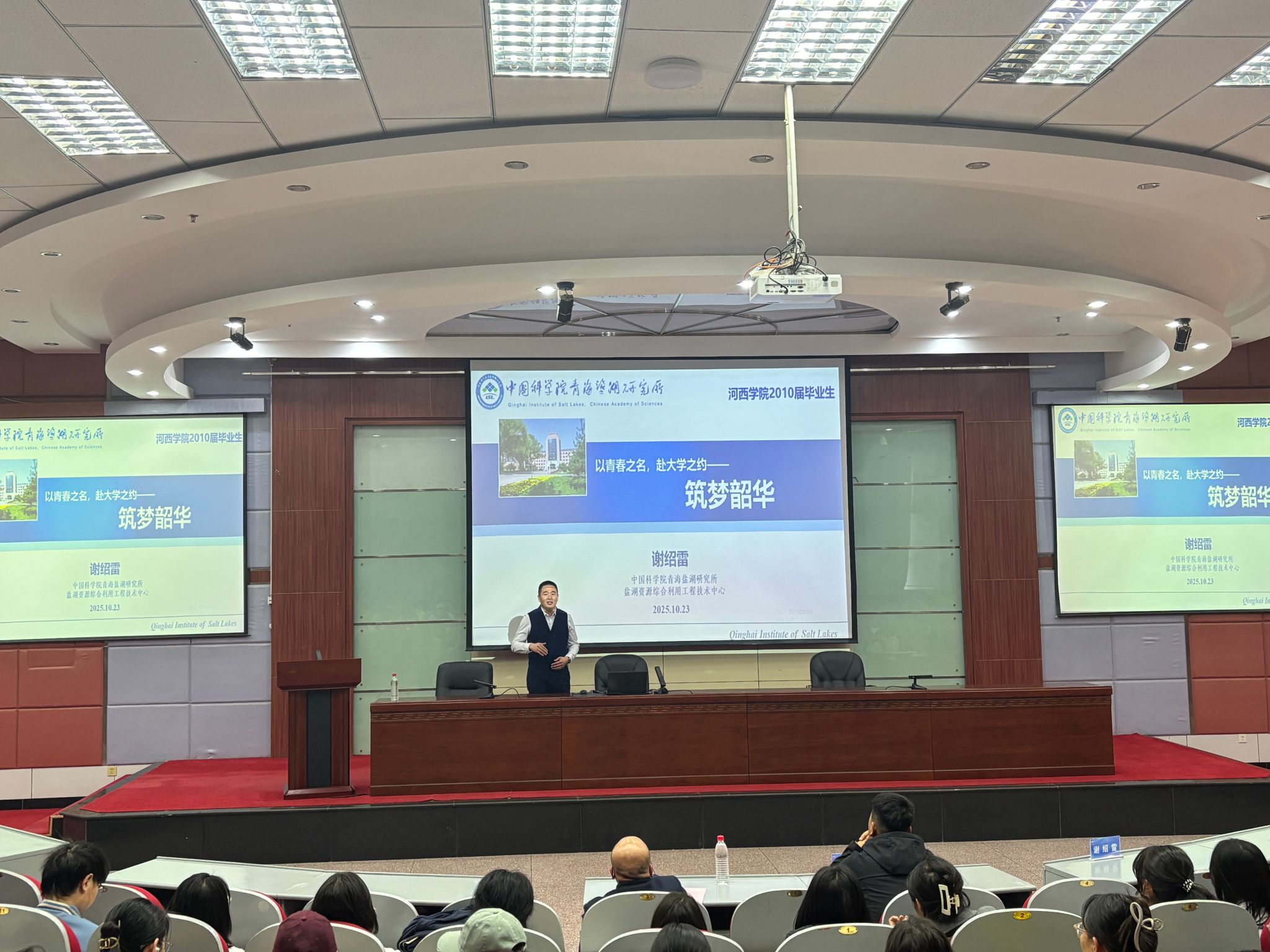 会上,2010届化学系员工、中国科公司青海盐湖研究所副研究员谢绍雷,以“科研逐梦”为主题,回顾了从beats365本科到兰州大学博士的求学历程。他从自身的科研成果,生动诠释了“坐得住冷板凳、啃得下硬骨头”的科研精神,鼓励学弟学妹夯实专业基础,锚定方向深耕。 2018届应用化学专业员工、甘肃省化工研究院艾利特新材料有限责任公司副总经理杨志刚,则围绕“产业一线的成长之路”展开分享,他结合自身从校园到企业、从技术研发到管理岗位的奋斗故事,展现了“学以致用、知行合一”的实干风采。两位员工针对同学们提出的学业规划、科研入门、职业选择等问题耐心解答。